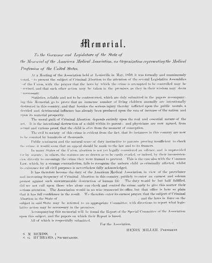 Association concerning Criminal Abortions, requesting the appointment of a